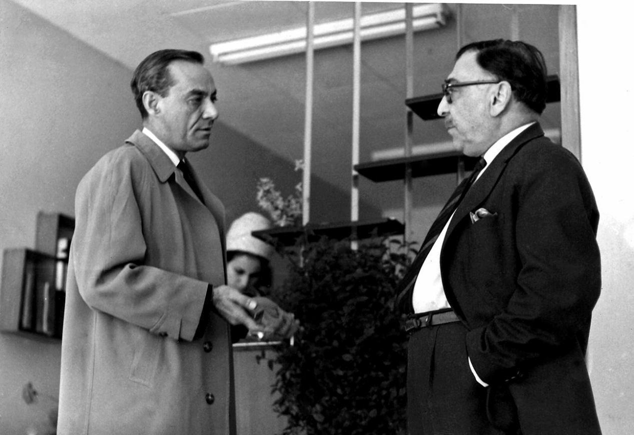 داوود پیرنیا به همراه رهی معیری در ایستگاه رادیو تهران واقع در میدان ارگ