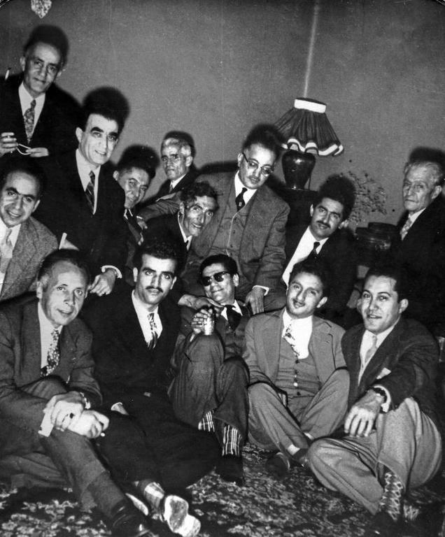 رديف دوم (راست به چپ): سليمان اميرقاسمي، فرهنگ شريف، ذبيح ملک پور، مرتضي محجوبي، ابراهيم صهبا، صادق سرمد